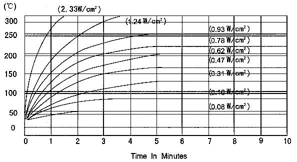 This map explains the surface temperature of a silicone rubber heater when it is not insulated and be put vertically at 20℃still air. This data is supported as reference tool according to the standard structure of 1.5mm thickness.
