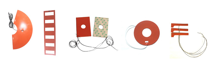硅膠加熱器的發(fā)熱體是經(jīng)過(guò)排列后的鎳鉻合金電阻絲,絕緣層是由兩片涂布硅橡膠的玻璃纖維布組成。硅橡膠加熱器具有優(yōu)越的柔軟性,標(biāo)準(zhǔn)厚度是1.5mm,可以與被加熱物體完全貼合,將熱量傳遞到需要加熱的地方