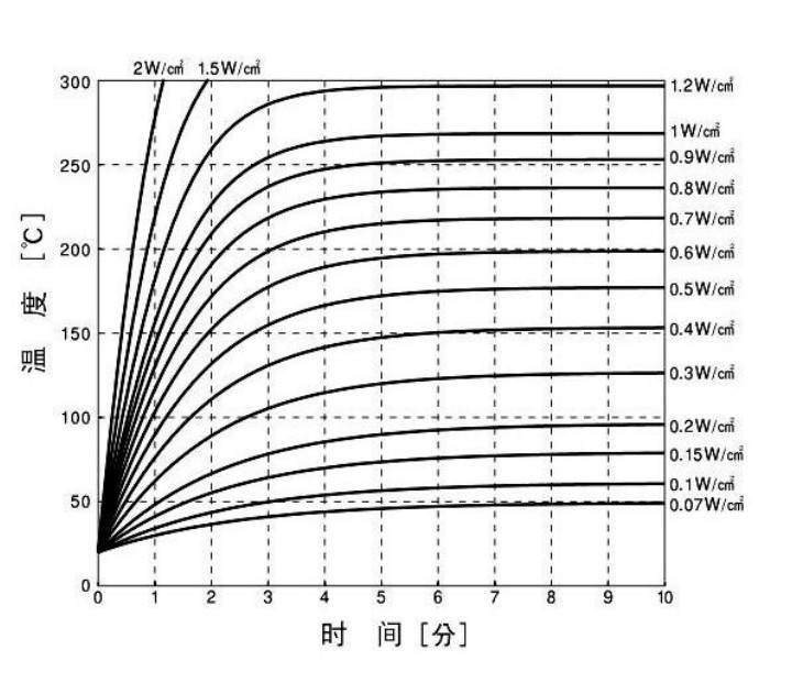 以右圖升溫曲線為參考,可以確定不同產(chǎn)品外形產(chǎn)品的功率參數(shù)。